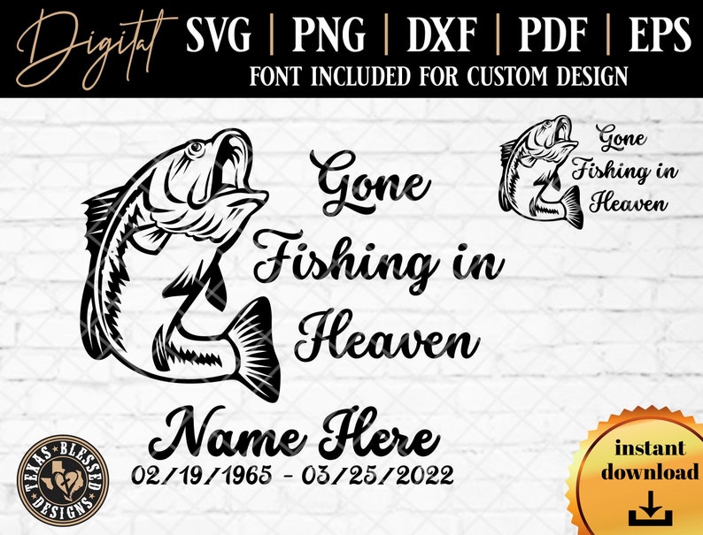 Make your projects shine with Gone Fishing In Heaven SVG! Our digital download design is the perfect way to create stunning visuals for any project. Our Gone Fishing In Heaven SVG is perfect for t-shirt design, scrapbooking, photo albums, card making, coffee mug designs, prints, and anything you want to cut with your Cricut and Silhouette. We offers the perfect high-resolution artwork for all your creative needs. With a few simple clicks, you can easily bring life to any project with our beautiful designs. Download now and get creating!