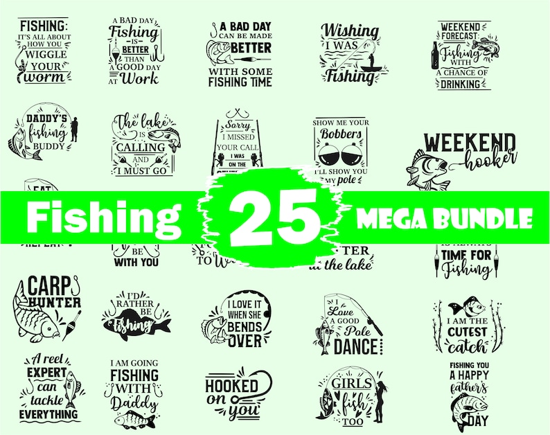 Make your creative projects shine with 25 Fishing SVG Bundle! Our high-quality, downloadable designs are perfect for any creative project, whether you're creating signs, shirts, mugs, or home decor. With our easy-to-use SVG files, you can create beautiful pieces of art in no time! Get ready to be amazed by the endless possibilities of 25 Fishing SVG Bundle and unlock your inner creativity today!